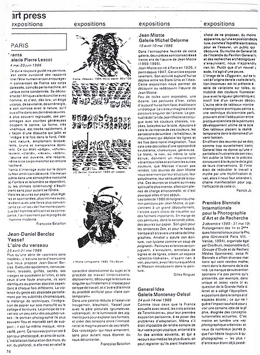 GALERIE MICHEL DELORME, PARIS, 1986. REVIEWS.